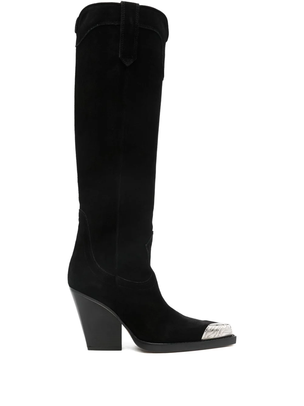 El dorado metal toe 90mm boots Highlights - Black - Suede upper - Metal toe - Block heel - Knee-high shaft - Pull-on style - This piece comes complete with a protective dust bag. Made in Italy Composition Outer: Calf Leather 100% Sole: Calf Leather 100% Lining: Calf Leather 100% SIZE & FIT Measurement HEEL 3.54 in(9 cm)
