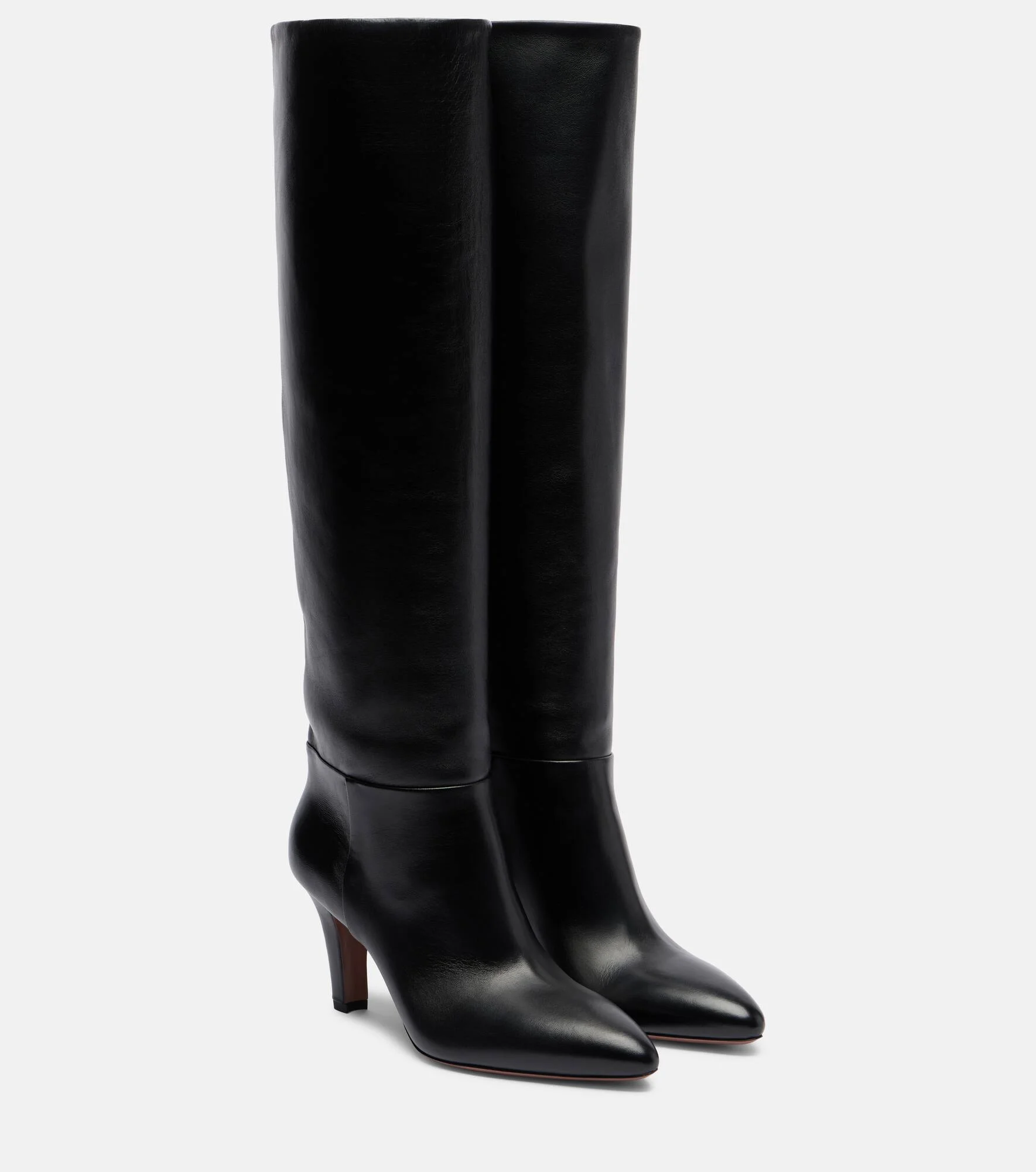 Step in statement-making style with the Elsa knee-high boots from Paris Texas. The pair is crafted in Italy from supple leather and features sleek pointed-toe silhouettes. Product Details - Upper: calf leather - Lining: leather - Sole: leather insole and sole - Color: black - Toe shape: pointed toe - Made in Italy - Includes: dust bag, shoe box - Designer color name: Black - Item color: black - Item number: P01143904 Size & Fit - True to size - European sizes - 7,5cm-3" heel - 45,5cm-18" shaft height (size EU 38) - 40cm-15.5" shaft width (size EU 38) - shaft width measured on largest part of boot