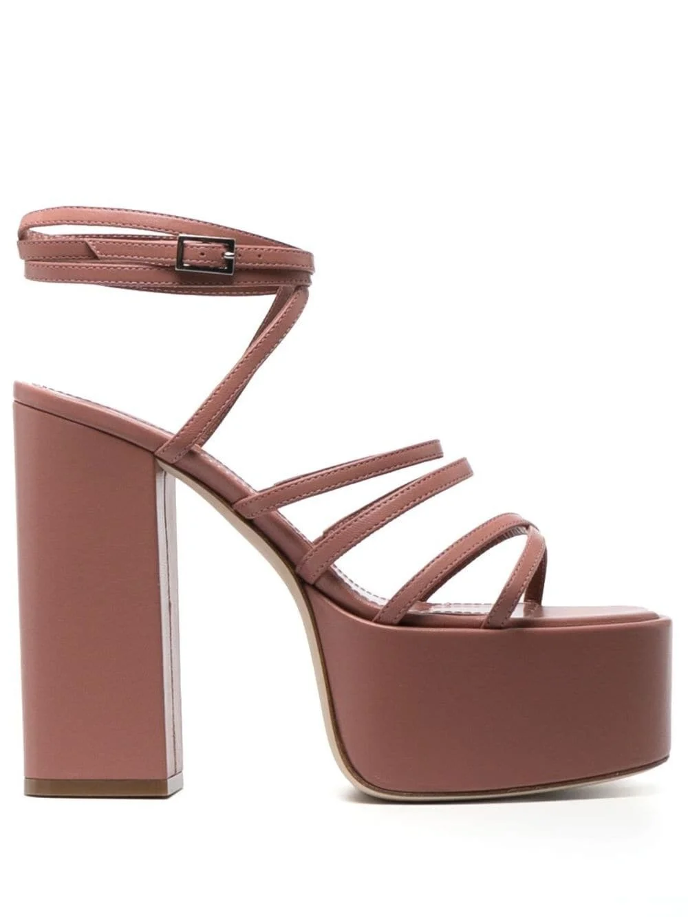 Evita leather platform sandals The Evita leather sandals join Paris Texas' lineup of soaring, chunky creations for the SS23 collection. Set on a bulky block heel and thick platform sole, they feature contrastingly slim straps that encase the foot, wrapping over and around the ankle. Highlights - Dark pink - Calf leather - Open toe - Crossover strap at the toe - Buckle-fastening ankle strap - 130mm block heel - Branded leather insole - Platform sole Made in Italy Composition Sole: Calf Leather 100% Lining: Calf Leather 100% Outer: Calf Leather 100% SIZE & FIT Measurement HEEL 4.92 in(12.5 cm) PLATFORM 2.16 in(5.5 cm) CIRCUMFERENCE 9.05 in(23 cm) HEIGHT 3.14 in(8 cm)
