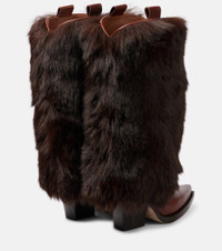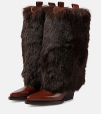 Faux fur and leather knee-high boots