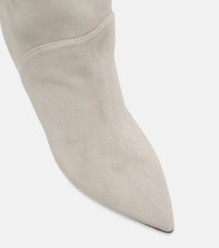 Paris Texas' versatile designs revolve around creativity, freedom, and expression. Crafted in Italy from smooth suede, the Gaia ankle boots feature a sleek pointed toe and a 85mm stiletto heel for added sophistication. Product Details - Upper: calf leather (suede) - Lining: leather - Sole: leather insole and sole - Toe shape: pointed toe - Made in Italy - Includes: shoe box, dust bag - Designer color name: Ice Grey - Item color: gray - Item number: P01100204 Size & Fit - True to size - Wide around the ankle - European sizes - 8,5cm-3.5" heel (size EU 38)
