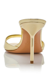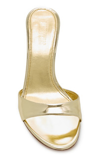 With their incredible, made-in-Italy knee-highs, Milanese sisters Anna and Margherita Brivio have propelled their shoes to cult status (they count Gigi and Kendall as fans). Their signature styles are heeled, structured yet pliable, and with roomy fits—from lace-up thongs to platforms and PVC slides. A guaranteed mood boost, in other words, that’s brimming with versatility. Crafted from slick patent leather in golden metallic, the 'Lidia' sandals have an easy, slip on silhouette set atop a striking stiletto heel. Pair yours with an embellished mini dress for a night out. PRODUCT DETAILS - Heel height measures approximately 70mm/ 2.75" - Slip on - Composition: patent leather - Imported
