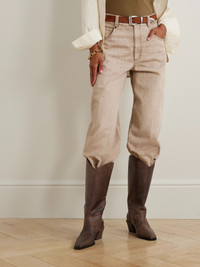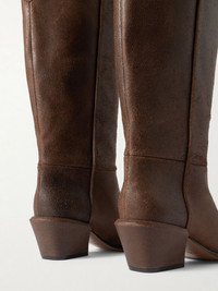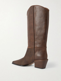 Rooted in French sophistication and infused with the raw energy of the West, Paris Texas is a study in contrasts. These 'Bettina' knee boots have been made in Italy from supple leather in a refined, cowboy-inspired shape with pointed toes and block heels. Size & Fit - Fits true to size, take your normal size - Italian sizing Details & Care - Heel measures approximately 50mm/ 2 inches - Dark-brown leather - Pull on