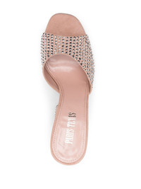 100mm Holly Anja sandals Paris Texas blends timeless silhouettes with intriguing details for an elevated look, as seen with these pink-hued mules. The pair is embellished with glimmering crystals and sits atop a statement 100mm block heel. Highlights - Light pink - Calf suede - Crystal embellishment - Open toe - Single toe strap - Slip-on style - 100mm block heel - Branded leather insole Made in Italy Composition Suede 100% SIZE & FIT Measurement HEEL 3.93 in(10 cm)