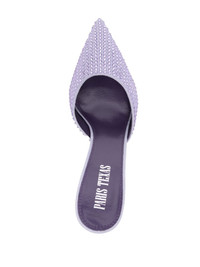 Hollywood 75mm crystal-embellished mules Paris Texas' bold style is encapsulated in these Hollywood shoes, crafted in lilac leather with studded crystals. The hybrid silhouette combines a mule design with a pointed-toe pump style. Highlights - Lilac - Calf leather - Crystal embellishment - Pointed toe - Slip-on style - 75mm stiletto heel - Branded leather insole - Leather outsole Made in Italy Composition Suede 100% SIZE & FIT Measurement HEEL 2.75 in(7 cm)