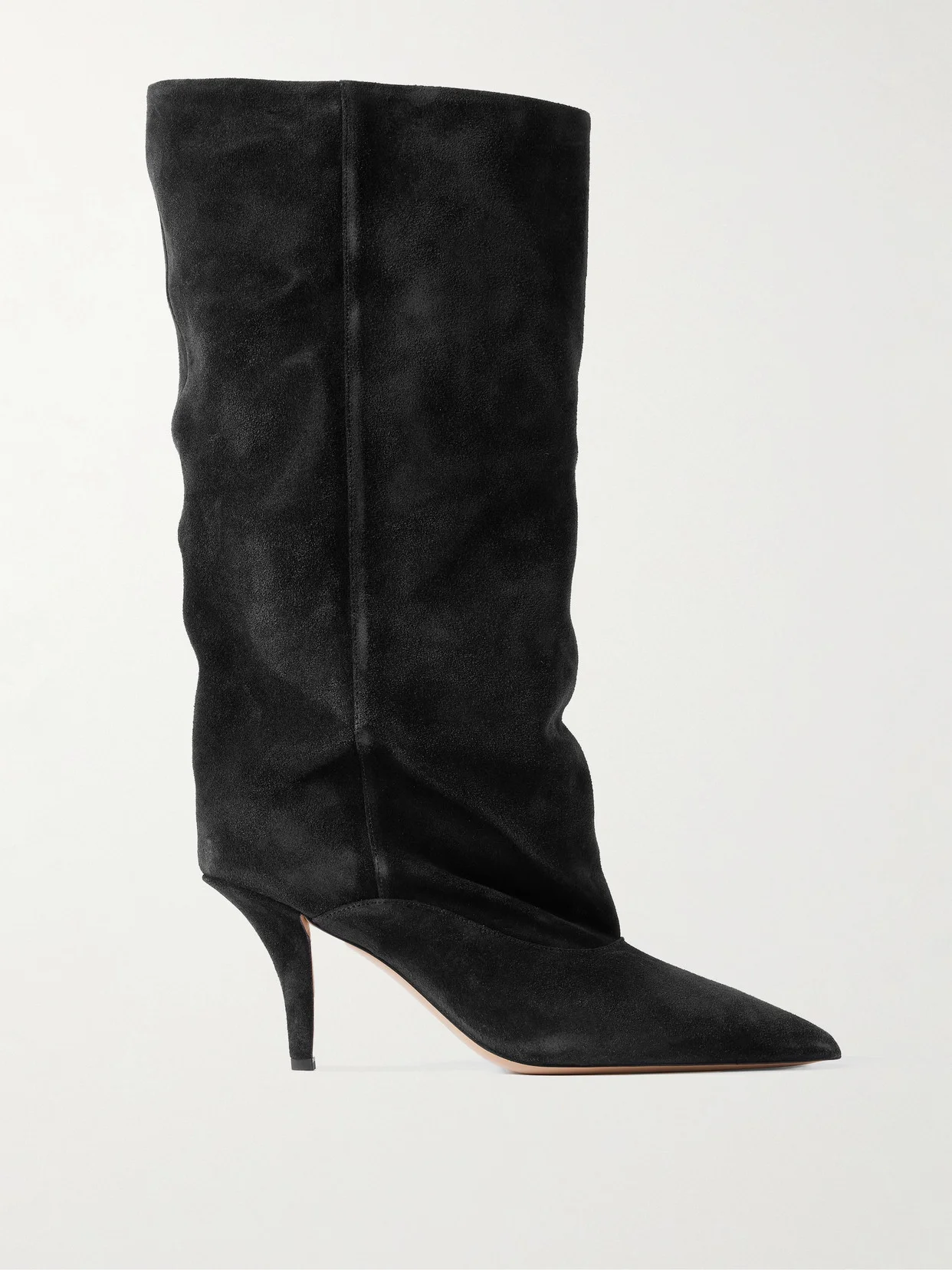 Paris Texas' 'Ines' boots have been made in Italy from velvety suede in a wide, slouchy shape that looks effortlessly cool and chic. They're designed with pointed toes and 75mm curved heels. Wear yours with skinny pants or peeking out from beneath a midi dress.