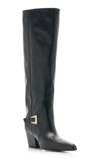 High-end Italian footwear brand Paris Texas was established in 2015 by Annamaria Brivio. As the name suggests, Paris Texas plays with contrast, capturing the brand’s dual soul. Parisian chic sensuality meets the fearless audacity of Texan cowboys. Crafted from sleek nappa leather, the 'Jane' blends a Western vibe with urban chic. It features a barrel shaft, pointed toe, and slanted heel. PRODUCT DETAILS - Heel measures approximately 60mm / 2.5" - Slip on - Composition: nappa leather - Made in Italy