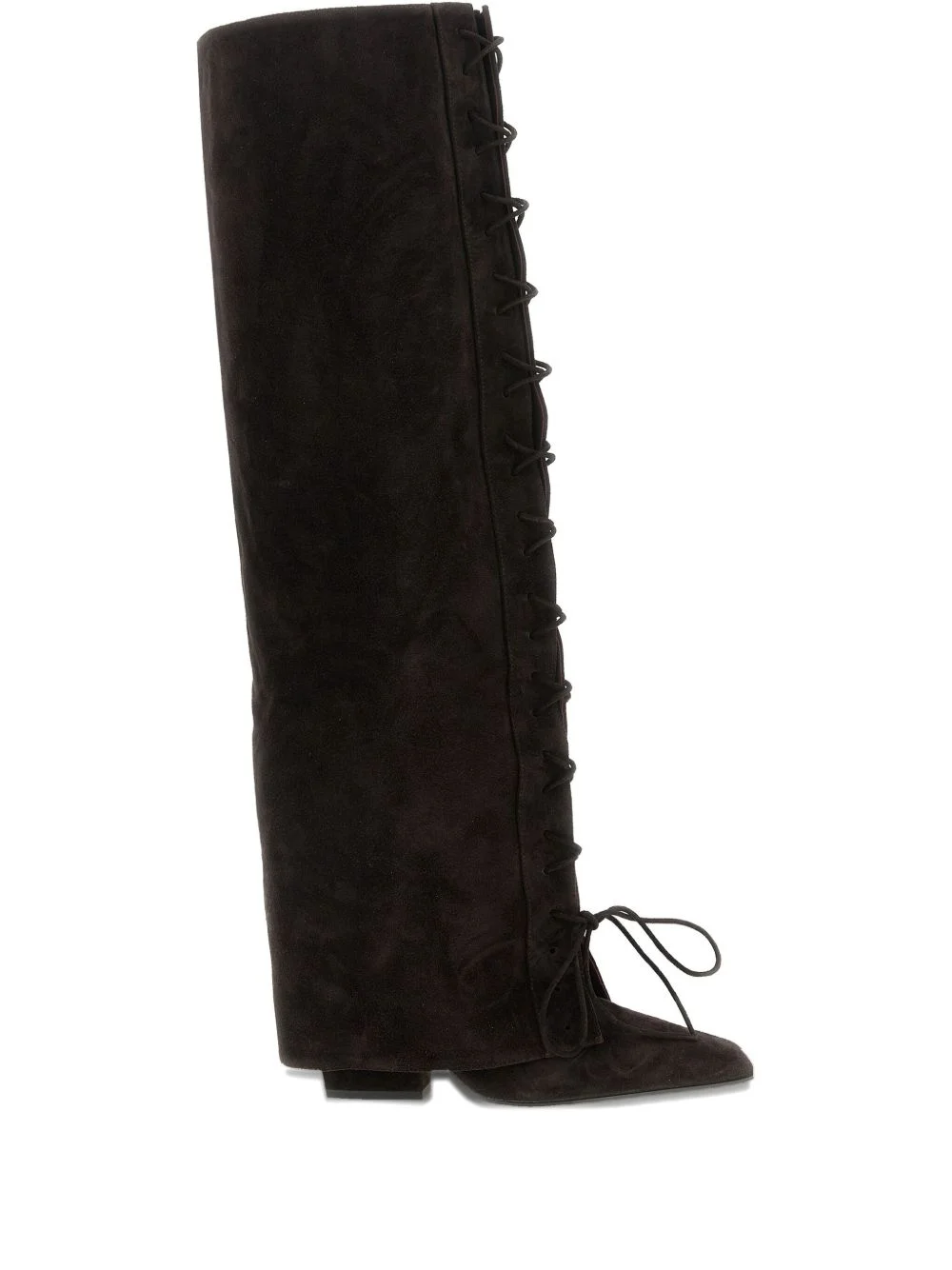 100m Jane fold over lace-up boots Highlights - Brown - Suede texture - Tube leg - Lace-up fastening - Squared toe - Texan heel Made in Italy Composition Lining: Calf Leather 100% Outer: Calf Suede 100% Sole: Rubber 100%