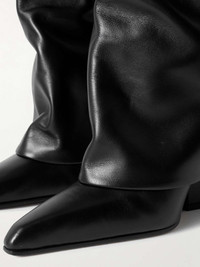 EDITORS'NOTES Paris Texas’ ‘Jane’ boots are undeniably cool, thanks to their exaggerated, folded cuffs. Crafted in Italy from leather, they have pointed toes and rest on Cuban heels. Show yours off with a mini skirt. SIZE & FIT - Fits true to size, take your normal size - Italian sizing DETAILS & CARE - Heel measures approximately 60mm/ 2.5 inches - Black leather (Calf) - Pull on