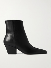 Paris Texas' 'Jane' ankle boots combine sleek minimalism with a Western-inspired edge. Set on sturdy Cuban heels, they've been made in Italy from smooth leather and have pointed toes. Size & Fit - Fits true to size, take your normal size - Italian sizing Details & Care - Heel measures approximately 60mm/ 2.5 inches - Black leather (Calf) - Zip fastening along sides