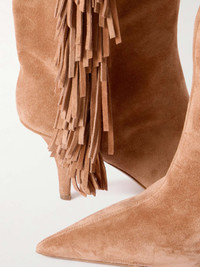 EDITORS'NOTES The swishy fringing on Paris Texas' 'Jessie' knee boots lends a chic, Western-inspired feel. Crafted in Italy from suede, they have elongated pointed toes and rest on fluted stiletto heels. Show yours off with mini hemlines. SIZE & FIT - Fits true to size, take your normal size - Italian sizing DETAILS & CARE - Heel measures approximately 75mm/ 3 inches - Tan suede - Pull on