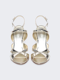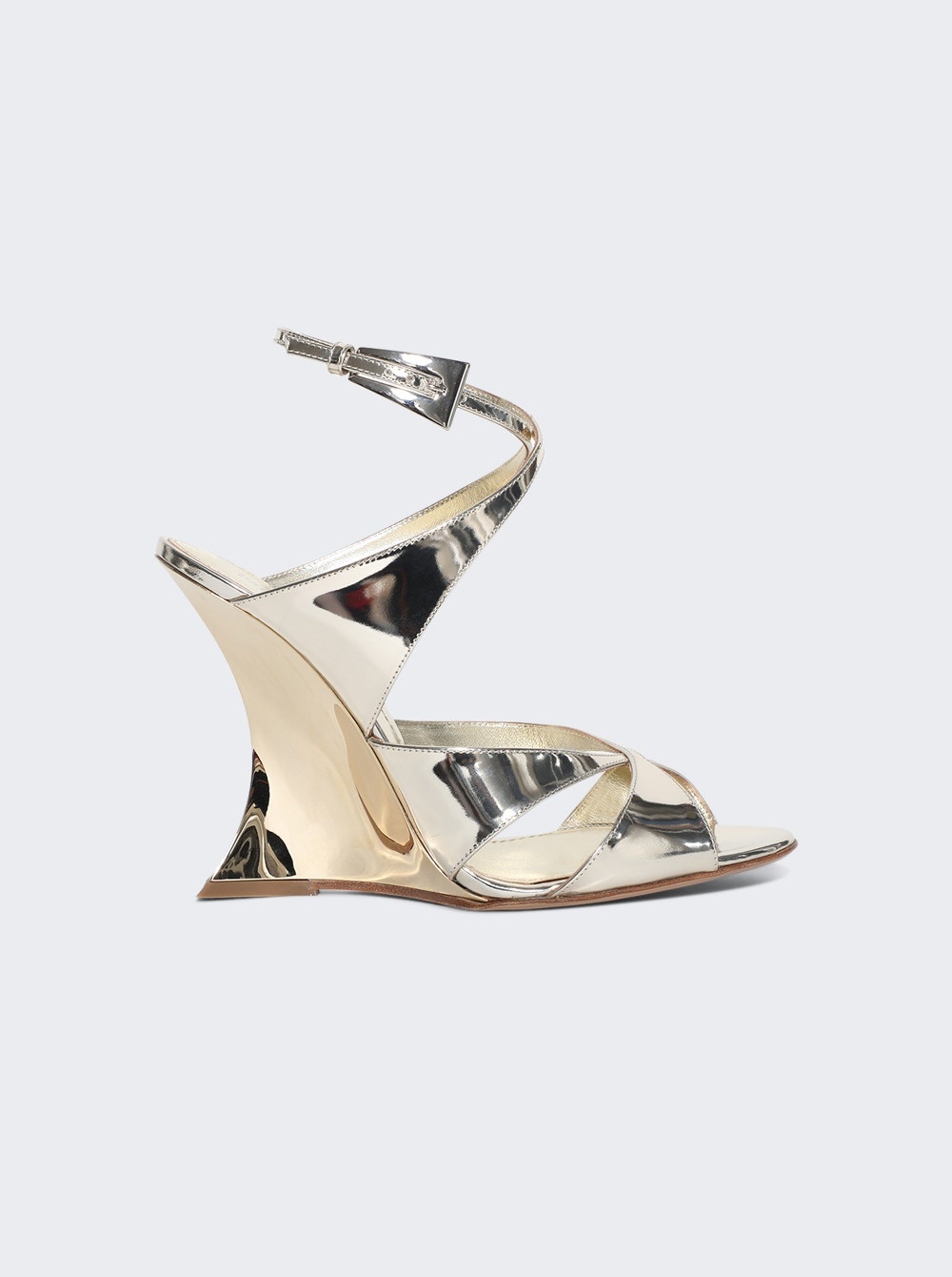 Details - Sandals in platinum mirror-effect leather - Platinum galvanized wedge - Heel height: 105mm / 4.1in - Listed in EU sizing, fits true to size Brand Style: PX1594 Designer/Brand: PARIS TEXAS