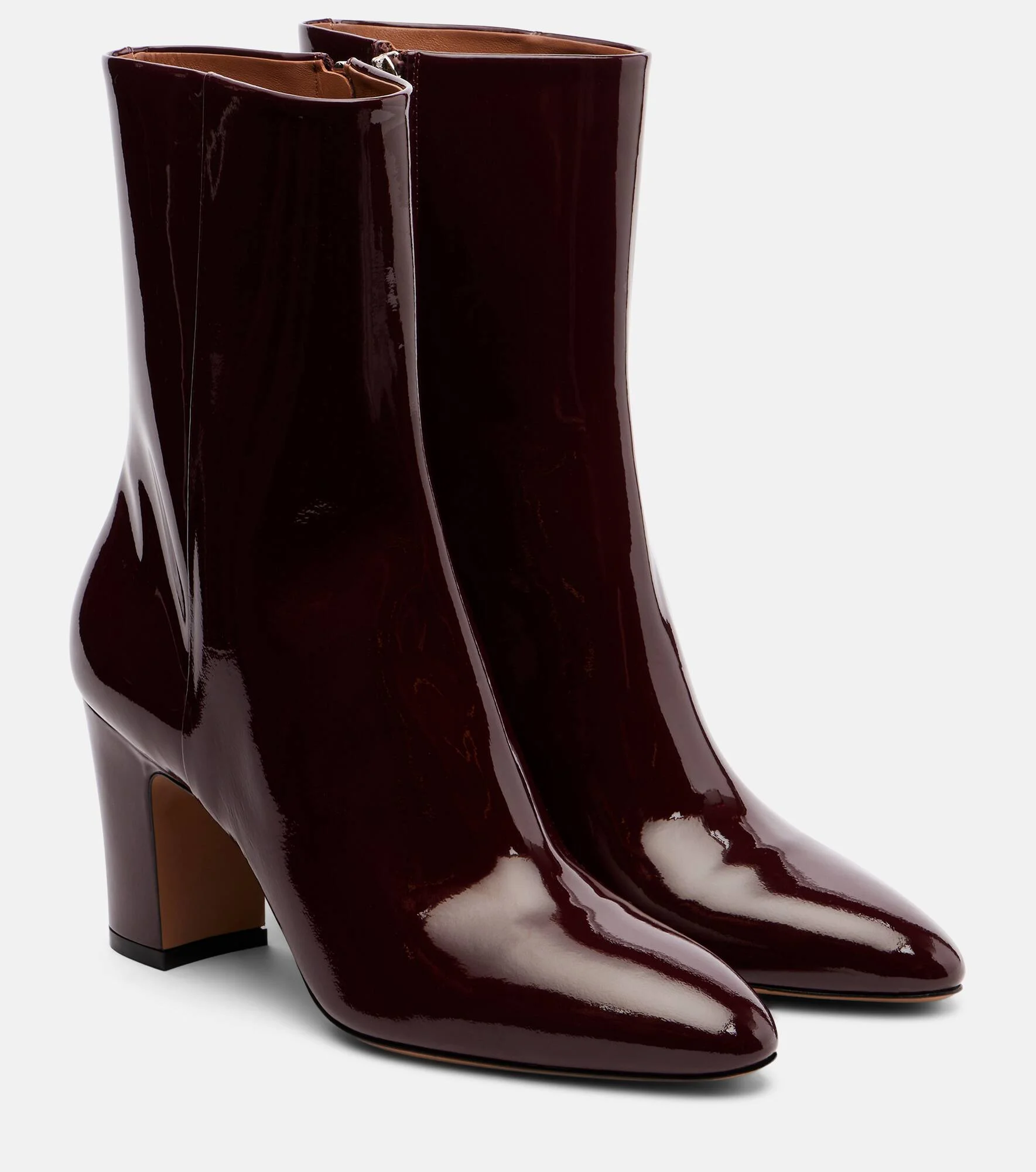 Crafted in Italy from patent leather, the Lavinia ankle boots from Paris Texas feature covered chunky 75mm block heels. This design is complete with leather insoles and soles on pointed-toe silhouettes. Product Details - Upper: calf leather - Lining: leather - Sole: leather insole, leather and rubber sole - Toe shape: pointed toe - Made in Italy - Includes: shoe box, dust bag - Designer color name: Pinot Noir - Item color: burgundy - Closure: zipped side - Item number: P01099317 Size & Fit - True to size - European sizes - 7,5cm-3" heel (size EU 38)
