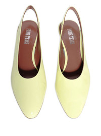 50mm Lavinia pumps Highlights - Banana yellow - Slingback strap - Branded leather insole - Leather sole - Mid block heel Imported Composition Outer: Patent Leather 100% Sole: Calf Leather 100% Lining: Calf Leather 100% SIZE & FIT Measurement HEEL 1.96 in(5 cm)