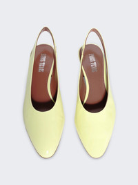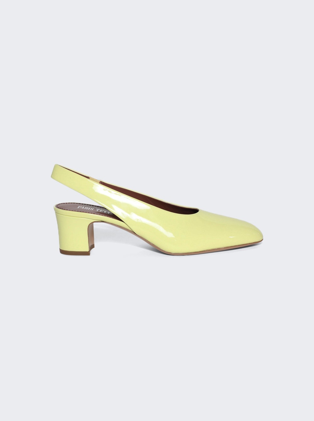 Details - Patent leather slingback pumps - Almond toe - Block heel - Heel height: 50mm / 2in - Listed in EU sizing, fits true to size Brand Style: PX1547 Designer/Brand: PARIS TEXAS
