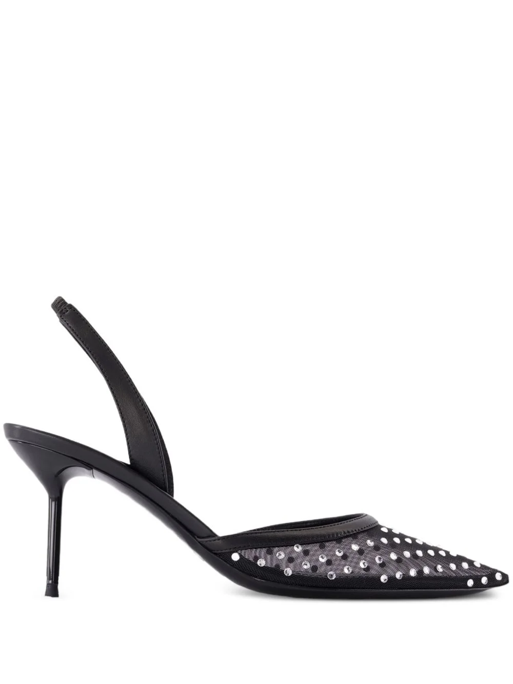 crystal-embellished slingback pumps Highlights - Black - Slingback design - Crystal embellishments - Mesh panel - Pointed toe - Stiletto heel Made in Italy Composition Lining: Mesh 100% Sole: Calf Leather 100% Outer: glass 100%, Mesh 100% SIZE & FIT Measurement HEEL 2.75 in(7 cm)
