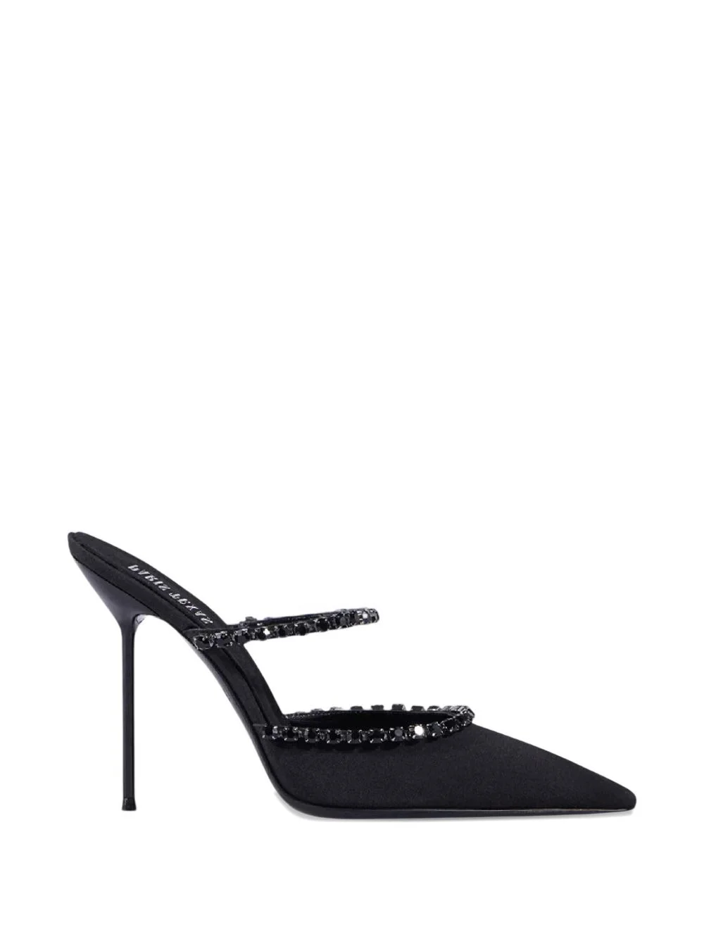 Lidia crystal-embellished pointed mules Highlights - Black - Crystal embellishment - Pointed toe - Stiletto heel - Strap Made in Italy Composition Outer: Fabric 100% Lining: Calf Leather 100% Sole: Calf Leather 100% SIZE & FIT Measurement HEEL 4.13 in(10.5 cm)