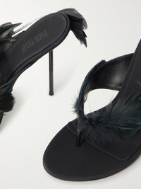 Lidia Feather-trimmed Satin Mules