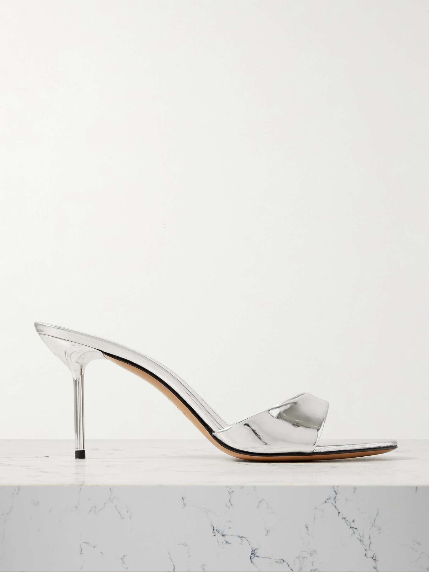 EDITORS'NOTES Paris Texas' 'Lidia' sandals are the easiest way to add a glamorous touch to outfits. They're made from mirrored-leather and set on 70mm stiletto heels. Style yours with straight-leg jeans and a silver pedicure. SIZE & FIT - Fits true to size, take your normal size - Italian sizing DETAILS & CARE - Heel measures approximately 70mm/ 3 inches - Silver mirrored-leather - Slip on