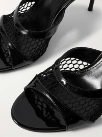 Lidia patent-leather and mesh sandals Black