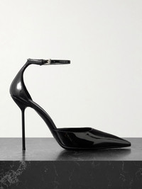 Paris Texas' 'Lidia' pumps are set on pin-thin stiletto heels that sharpen the classic silhouette. They've been made in Italy from glossy patent-leather and have pointed toes and adjustable ankle straps featuring silver-tone buckles. Size & Fit - Fits true to size, take your normal size - Italian sizing Details & Care - Heel measures approximately 105mm/ 4 inches - Black patent-leather (Calf) - Buckle fastening ankle straps
