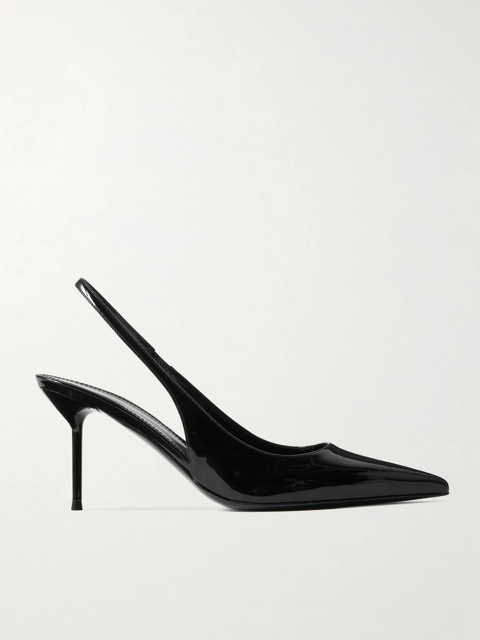 Paris Texas’ 'Lidia' pumps have been made in Italy from glossy patent-leather in classic black. Set on 70mm heels, they have pointed toes and an elasticated slingback strap to keep them comfortably secure. Size & Fit - Fits true to size, take your normal size - Italian sizing Details & Care - Heel measures approximately 70mm/ 3 inches - Black patent-leather (Calf) - Elasticated slingback strap