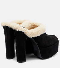 Look to Paris Texas for shoes that embody modern sophistication with a glamorous flair. Expertly crafted from soft suede, the Malena platform mules are lined with plush shearling and feature 145mm block heels. Product Details - Upper: calf leather (suede) - Lining: shearling - Sole: shearling insole, leather sole - Toe shape: round toe - Made in Italy - Includes: dust bag, shoe box - Designer color name: Black - Item color: black - Item number: P01099344 Size & Fit - True to size - Narrow fit due to lining - European sizes - 6cm-2.5" platform (size EU 38) - 14,5cm-5.5" wedge heel (size EU 38)