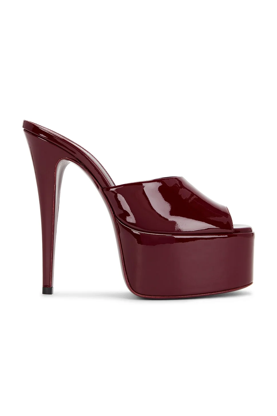 - Patent leather upper with leather sole - Slip-on styling - Leather lining with leather footbed - Rounded square toe - Stiletto heel - Platform design - Dust bag included - Approx 165mm/ 6.5 inch platform - Revolve Style No. PRTX-WZ132 - Manufacturer Style No. PX709