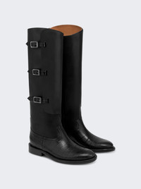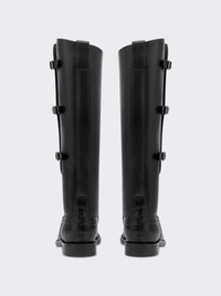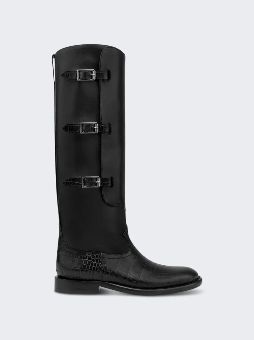 Details - Black calf leather flat boots - Crocodile-embossed detailing - Side buckles, round toe - Material: Calf Leather Size Information: Vendor Color Code: Brand Style: PX1720 Designer/Brand: PARIS TEXAS