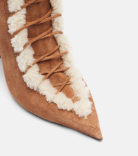 Make a sleek impression with the Nina boots from Paris Texas. The pair is crafted from suede with shearling trims and is set atop 105mm wedge soles. Product Details - Upper: leather (suede) - Lining: shearling - Sole: leather insole, leather and rubber sole - Toe shape: pointed toe - Made in Italy - Includes: shoe box - Designer color name: Cognac-Natural - Item color: brown - Closure: lace-up, zipped side - Item number: P01119939 Size & Fit - True to size - Slightly narrow at the toe - European sizes - 10,5cm-4" wedge heel (size EU 38)