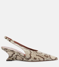 Inspired by modern women from around the world, Paris Texas is an Italian shoe label that embodies the idea of contrasts. Made from snake-effect leather, the Nina pumps are a classic slingback style set atop 50mm wedge heels. Product Details - Upper: leather - Lining: leather - Sole: leather insole, leather and rubber sole - Toe shape: pointed toe - Made in Italy - Includes: dust bag, shoe box - Designer color name: Naturale - Item color: beige, brown - Slingback strap - Item number: P01078523 Size & Fit - True to size - European sizes - 5cm-2" heel (size EU 38)