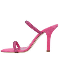- About the brand: Bold designer footwear with contemporary Italian luxury. - Holly Linda Leather Mule in pink ruby leather - Smooth insole - Smooth leather sole - 3.7in heel - Made in Italy