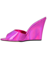 - Please note: Size selections are European. For US conversions, please reference size chart. - Color/material: prisma fuchsia polyurethane - Design details: almond toe - Smooth insole - Smooth leather sole - 4.3in heel - Please note: All measurements are approximate and were taken from a size 38; slight variations may occur. - Made in Italy