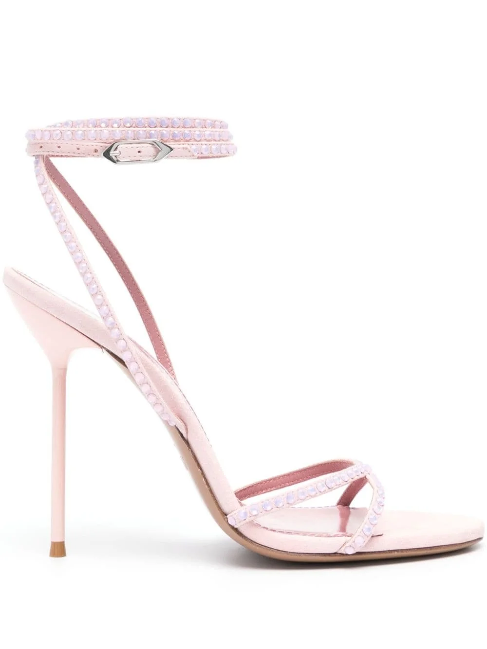 100mm Holly Liz sandals Highlights - Powder pink - Crystal embellishment - Pointed toe - Open toe - Crossover strap at the toe - Branded leather insole - High stiletto heel - Buckle-fastening ankle strap Made in Italy Composition Lining: Calf Leather 100% Outer: Calf Leather 100% Sole: Calf Leather 100% SIZE & FIT Measurement HEEL 3.93 in(10 cm) Sole height 0.39 in(1 cm)