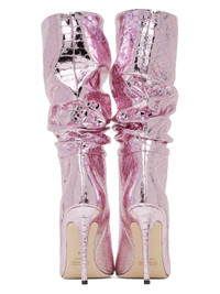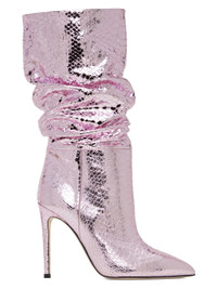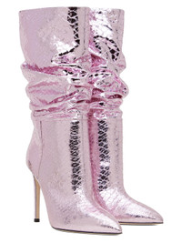 Ankle-high snake-embossed leather boots in metallic pink. Gathering throughout. · Pointed toe · Grained leather lining · Covered stiletto heel with rubber injection · Leather sole · Heel: H4 in Supplier color: Pink Leather. Made in Italy 232616F114003