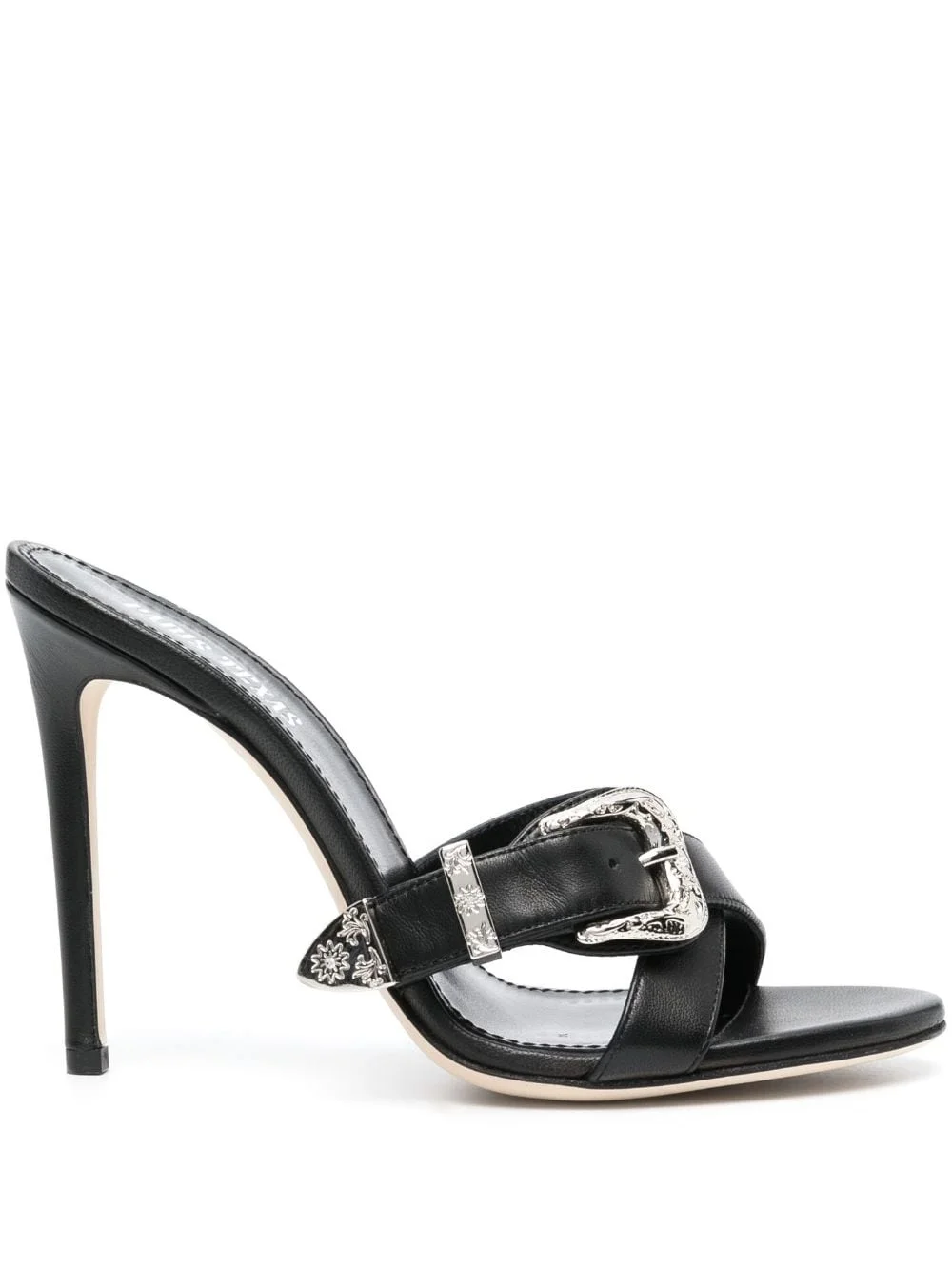 115mm Regina sandals Paris Texas toughens up your classic mules with this buckled pair. It’s crafted from smooth black leather and propped on high stiletto heels. Highlights - Black - Calf leather - Round toe - Crossover strap at the toe - Buckle-strap fastening - Slip-on style - Branded leather insole - High stiletto heel Made in Italy Composition Leather 100% SIZE & FIT Measurement HEEL 4.52 in(11.5 cm) Sole height 0.39 in(1 cm)