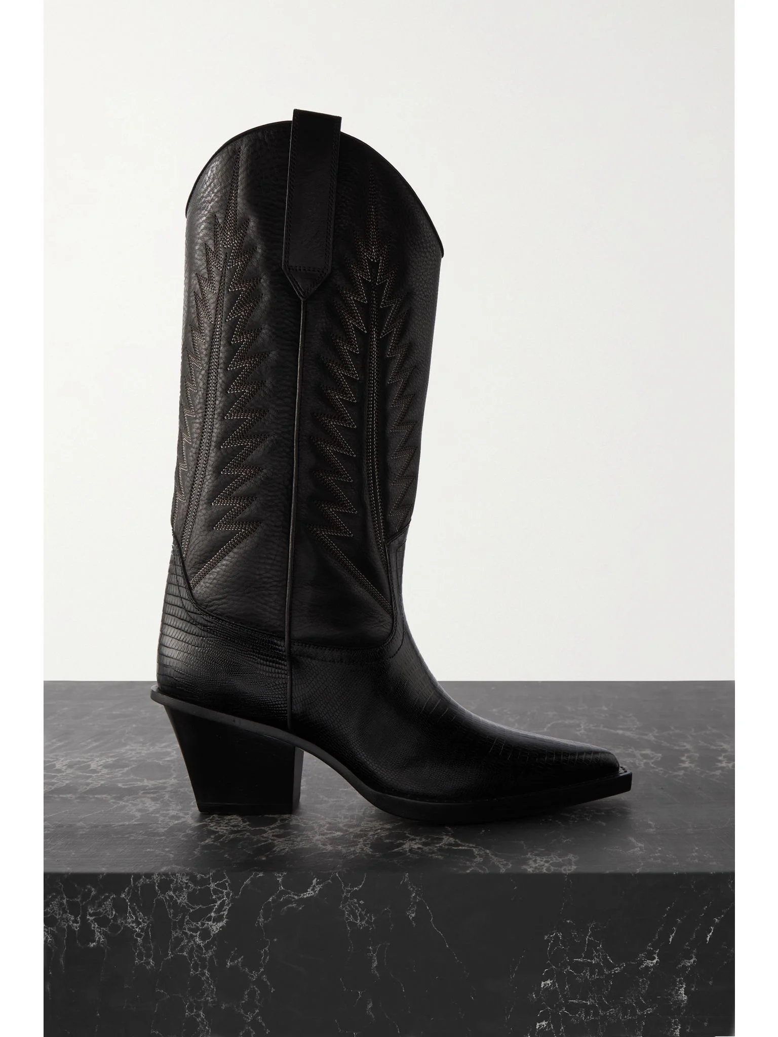 Rosario embroidered textured and croc-effect leather cowboy boots Black