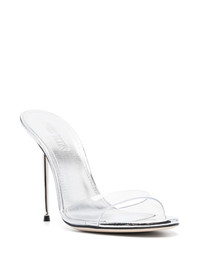 open-toe stiletto-heel mules Modern shoe brand Paris Texas is known for its innovative design style. This is reflected on this pair of mules from the SS23 collection which have a sleek open-toe silhouette and are constructed from transparent material. Highlights - Transparent design - Silver-tone - Open toe - Slip-on style - Stiletto heel Made in Italy Composition Lining: Calf Leather 100%, PVC 100% Outer: PVC 100% Sole: Calf Leather 100% SIZE & FIT Measurement HEEL 4.52 in(11.5 cm)