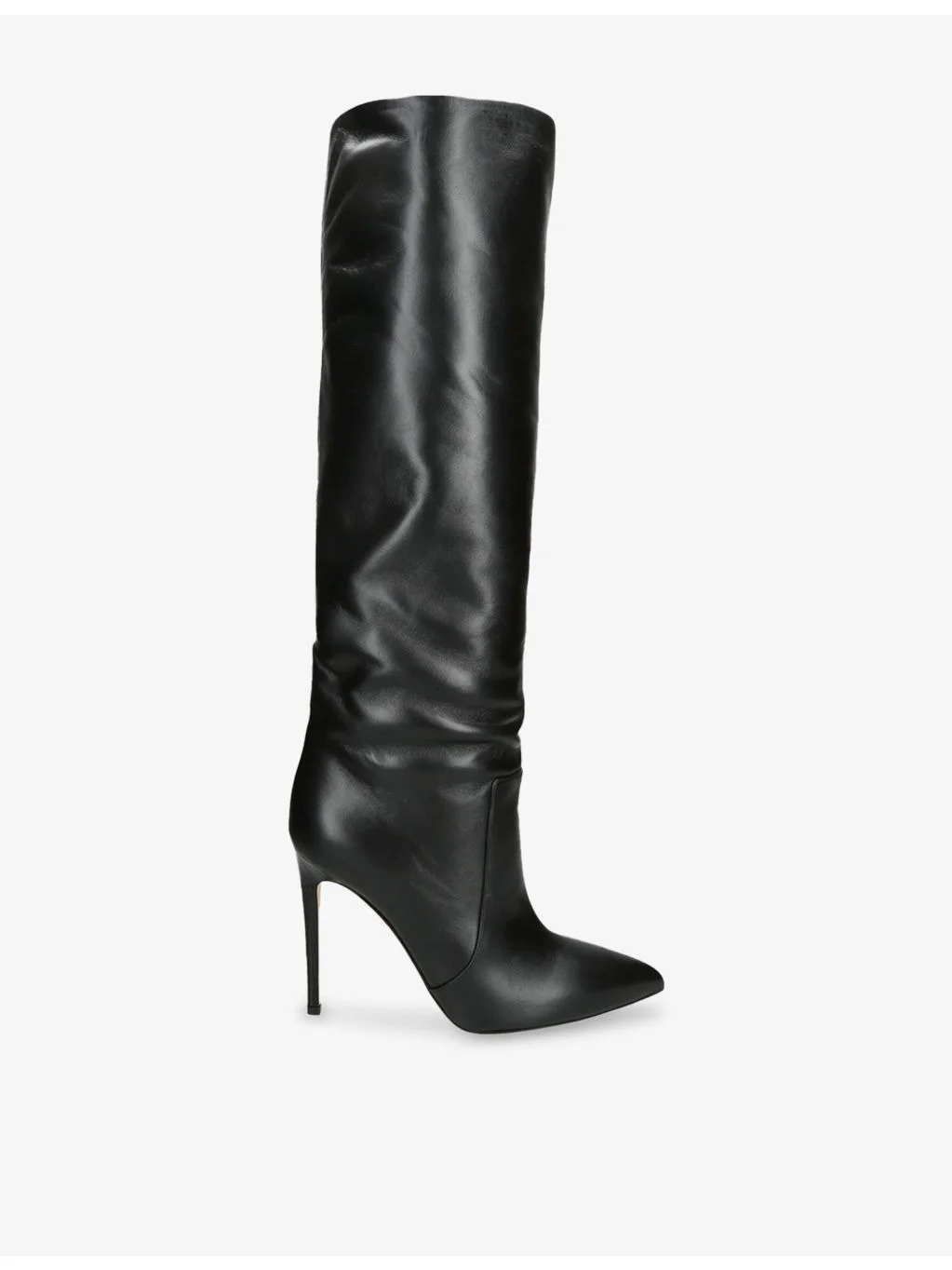 PRODUCT DETAILS - Paris Texas leather heeled boots - 100% leather - Knee-high, pointed closed toe, barrel shaft, high stiletto heel, crinkled finish - Heel height 105mm / 4.13in - Specialist leather clean - Made in Italy - Upper: 100% leather - Lining: 100% leather - Sole: 100% leather Ref: R04471330