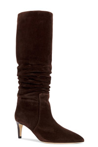 Details - Ruched suede upper with leather sole - Pull-on styling - Leather lining - Pointed toe - Siletto heel - Approx 60mm/ 2.36 inch heel - Approx 407mm/ 11.5 inch shaft - Shaft measures approx 40 cm in circumference - Made in Italy - Our Style No. PSTF-WZ293 - Manufacturer Style No. PX504
