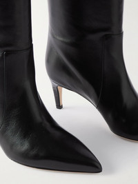 Paris Texas calls its 'Stiletto' knee boots its "most iconic style", re-imagined each season in fresh colors and textures. This version is made from smooth supple leather with pointed toes and croc-effect heels. Show yours off with short hemlines. Size & Fit - Fits true to size, take your normal size - Italian sizing Details & Care - Heel measures approximately 60mm/ 2.5 inches - Black leather - Pull on
