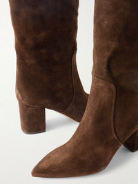 Paris Texas' 'Anja' knee boots are designed in a wide, slightly slouchy shape contrasted by a sleek pointed toe. They're made from velvety suede and rest on 70mm block heels for sturdy lift. Wear yours with the season's longline shorts or peeking out from midi skirts. Size & Fit - Fits true to size, take your normal size - Narrow at the calf - Italian sizing Details & Care - Heel measures approximately 70mm/ 3 inches - Brown suede - Pull on