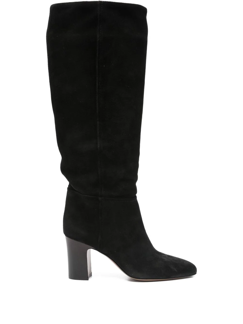 suede leather block-heel boots Highlights - Black - Suede leather - Block heel - Knee-high shaft - Almond toe - Slouchy upper Made in Italy Composition Lining: Calf Leather 100% Outer: Calf Suede 100% Sole: Calf Leather 100% SIZE & FIT Measurement HEEL 2.95 in(7.5 cm)