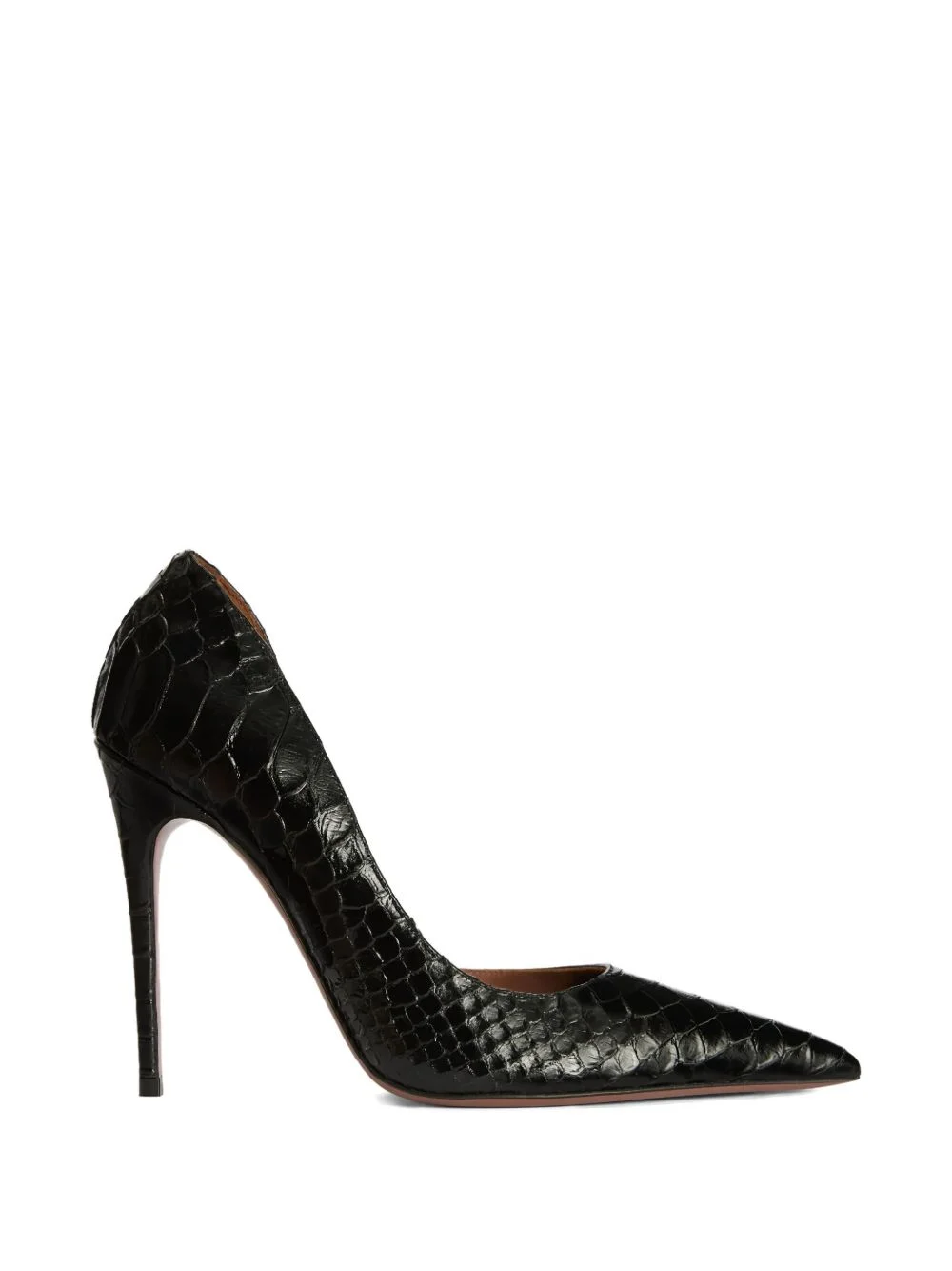 Vera snakeskin point-toe pumps Highlights - Black - Snakeskin effect - Pointed toe - Stiletto heel Made in Italy Composition Outer: Calf Leather 100% Lining: Calf Leather 100% Sole: Rubber 100% SIZE & FIT Measurement HEEL 4.13 in(10.5 cm)