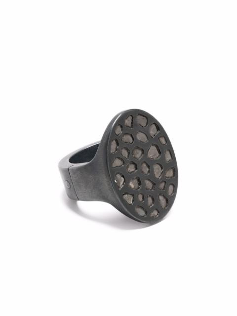 12mm sistema ring madia silver sterling silver / diamond diamond accents distressed finish Imported SIZE & FIT Model measurements Height 6 ft 2 in(1.87 m) Bust/Chest 38.18 in(97 cm) Hips 36.61 in(93 cm) Waist 29.13 in(74 cm) Measurement Band Width 0.43 in(1.1 cm) CIRCUMFERENCE 2.4 in(6.1 cm)