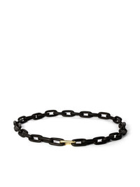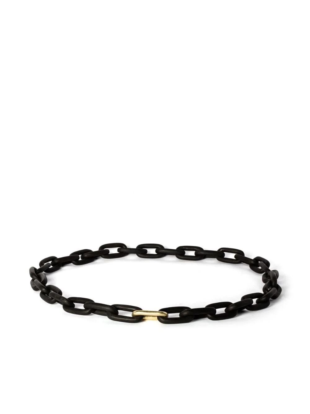 charm chain choker necklace Highlights - Black/gold-tone - Wood - Cable-link chain - Carabiner fastening Imported