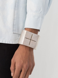 Crescent Plane bracelet silver-plated brass cut-out cross slip-on style hollow three-dimensional form Imported SIZE & FIT Model measurements Height 6 ft 2 in(1.87 m) Bust/Chest 38.18 in(97 cm) Hips 36.61 in(93 cm) Waist 29.13 in(74 cm)