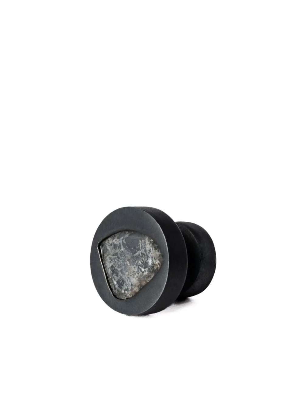 diamond-encrusted stud earring Highlights - Pirate black - Oxidised sterling silver - Rough-cut diamond - Burnished finish - Stud design - Post-back fastening - For pierced ears - Please consider that this is sold as a single earring. Imported SIZE & FIT Measurement HEIGHT 0.05 in(0.1 cm) Weight (single earring) 8 g(8 g) WIDTH 0.05 in(0.1 cm)