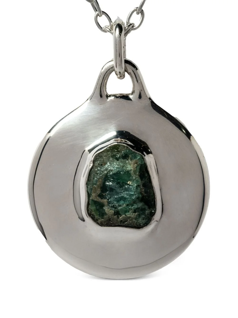 Disk necklace Highlights - Silver-tone - Sterling silver/green tourmaline - Polished finish - Engraved logo - Gemstone pendant - Curb chain Imported SIZE & FIT Measurement Length when open 29.13 in(74 cm) PENDANT LENGTH 2.36 in(6 cm) PENDANT WIDTH 2.36 in(6 cm)