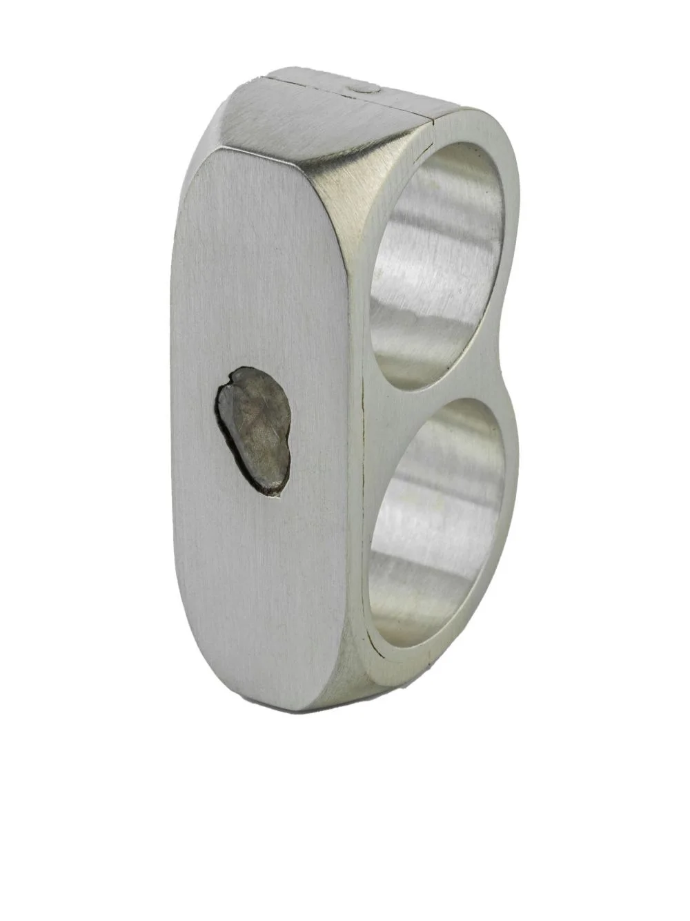 double-ring diamond slab ring Highlights - Silver - Sterling silver - Diamond slab - Double ring design - Oval shape - 17mm Imported SIZE & FIT Measurement Feature Length 0.66 in(1.7 cm) Feature Width 1.77 in(4.5 cm)